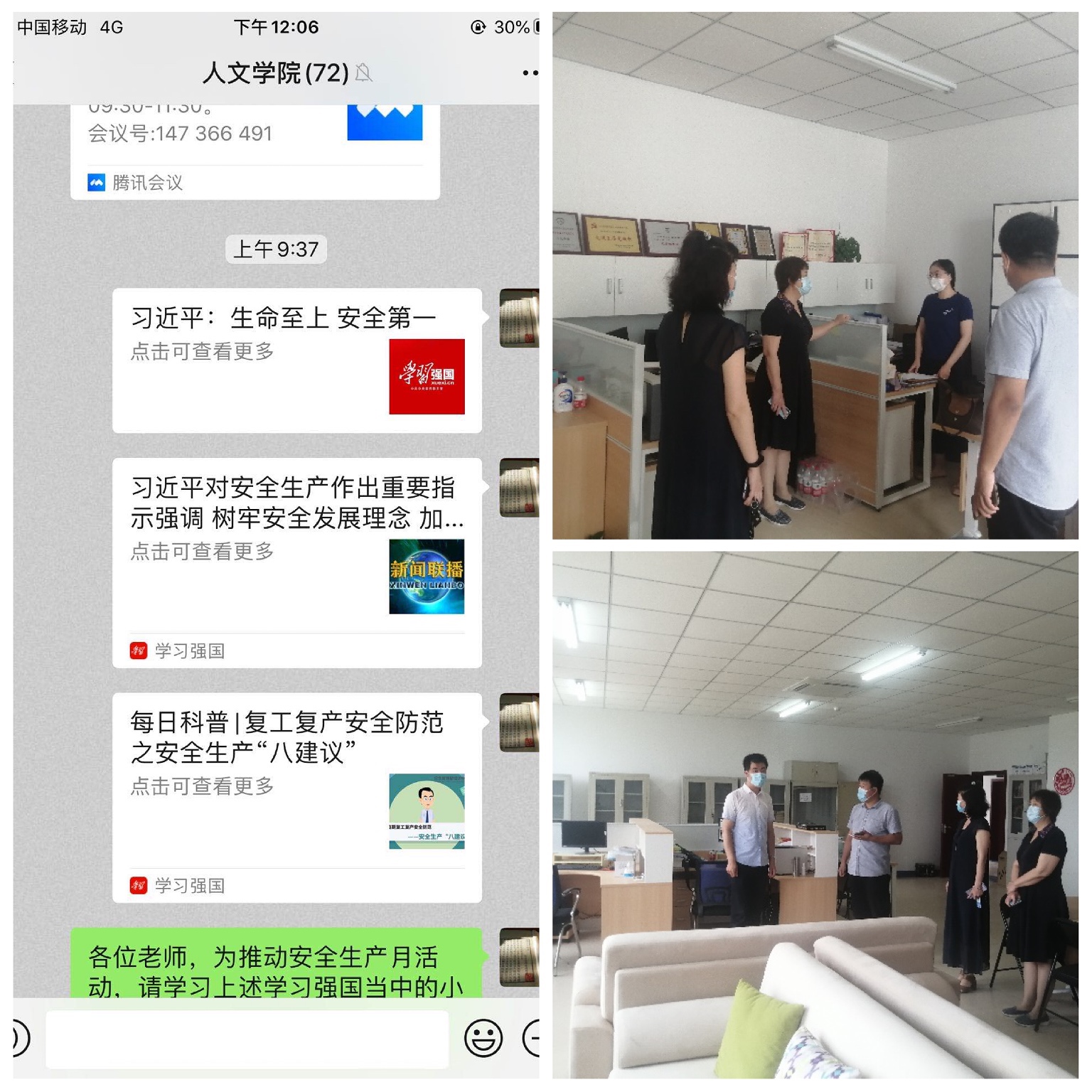 2020年6月24日上午8点30分,beat365唯一官方网站党委理论学习中心组通过线上线下相结合的方式开展习近平总书记关于安全生产的重要论述的学习,重温习近平总书记关于“生命至上、安全第一思想理念