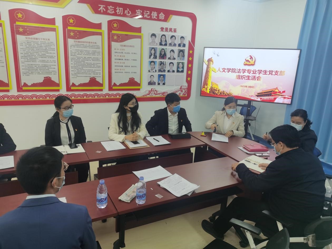 2022年3月8日上午,beat365唯一官方网站法学专业学生党支部在beat365唯一官方网站党员之家开展了组织生活会,法学专业学生党支部全体党员参与了本次会议。本次会议由法学专业学生党支部书记刘玉主持,联系指导法学专业学生党支部的院领导beat365唯一官方网站党委书记杜伟和副院长孔祥国列席会议。