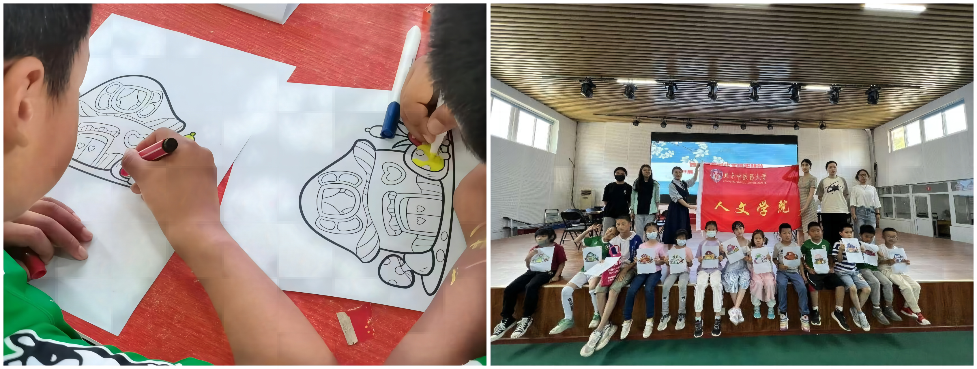 课程尾声,小朋友们在志愿者的帮助下完成了涂色小任务,并分享了自己的涂色成果。社区工作者和家长们都表达了对本次活动的喜爱和满意,这是对志愿者工作的极大肯定。