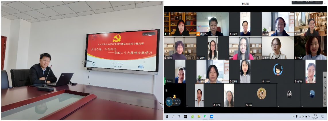 3月1日上午10:00,beat365唯一官方网站公共外语党支部在beat365唯一官方网站305会议室和腾讯会议开展了“矢志不渝,不负时代-党的二十大精神专题学习”党课活动。本次党课由公共外语党支部书记陈子杰老师主讲,支部全体老师参加了此次学习。