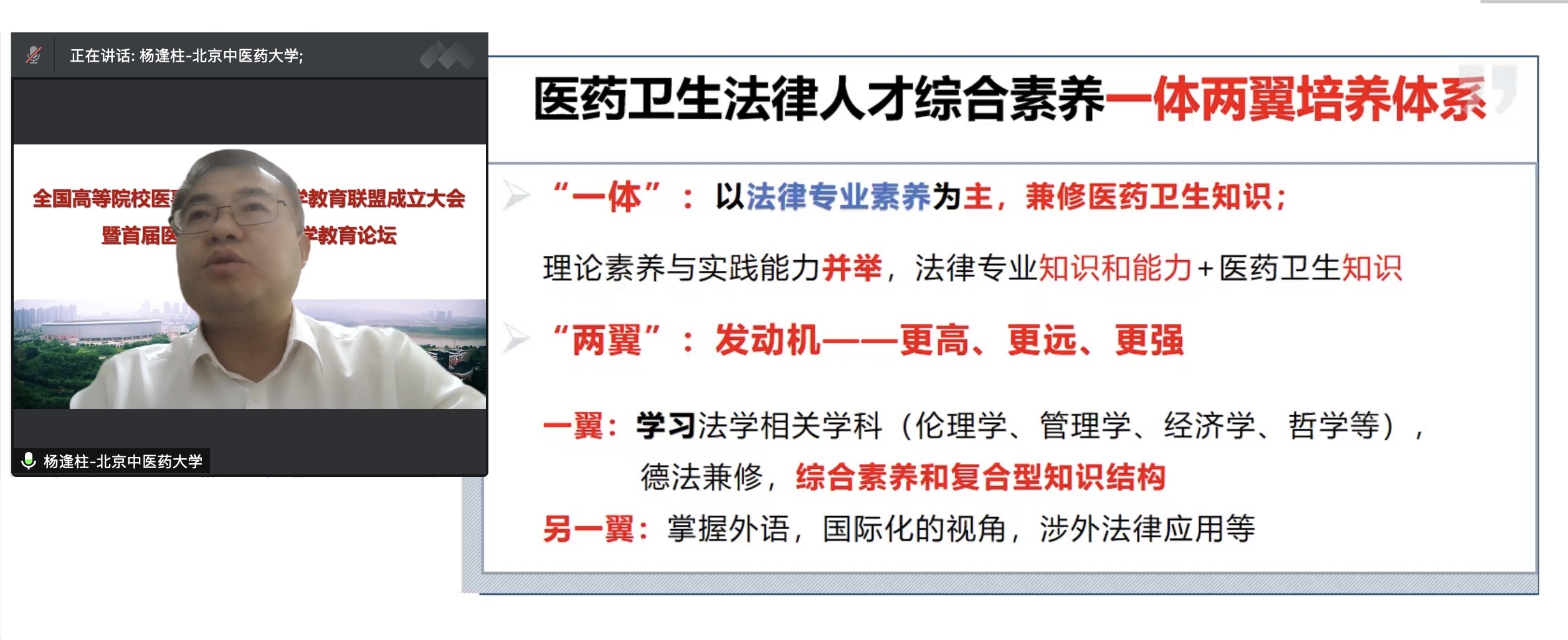 在活动中,beat365官网杨逢柱副教授受邀担任全国高等院校医事(卫生)法学教育联盟副理事长,并根据beat365官网承担的2021年教育部新兴文科专业建设探索与实践项目《新兴文科医药卫生法学专业建设探索与实践》的研究成果,以《医药卫生法律人才综合素养的“一体两翼”培养体系》为题做主题报告。