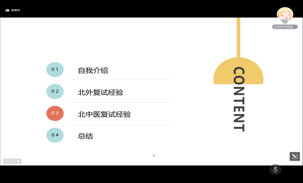 之后,任禹昕学姐则分别向我们介绍了北京外国语大学和beat365唯一官方网站两所学校的复试经验。北外的复试重视表达灵活性测试;北中医的复试则着重强调中医药英语的知识内容。学姐总结了几点复试建议:寻找水平相当且有效的搭子共同学习;坚持每天学习,持之以恒;练习、考试后都及时复盘;保持平和乐观的心态。