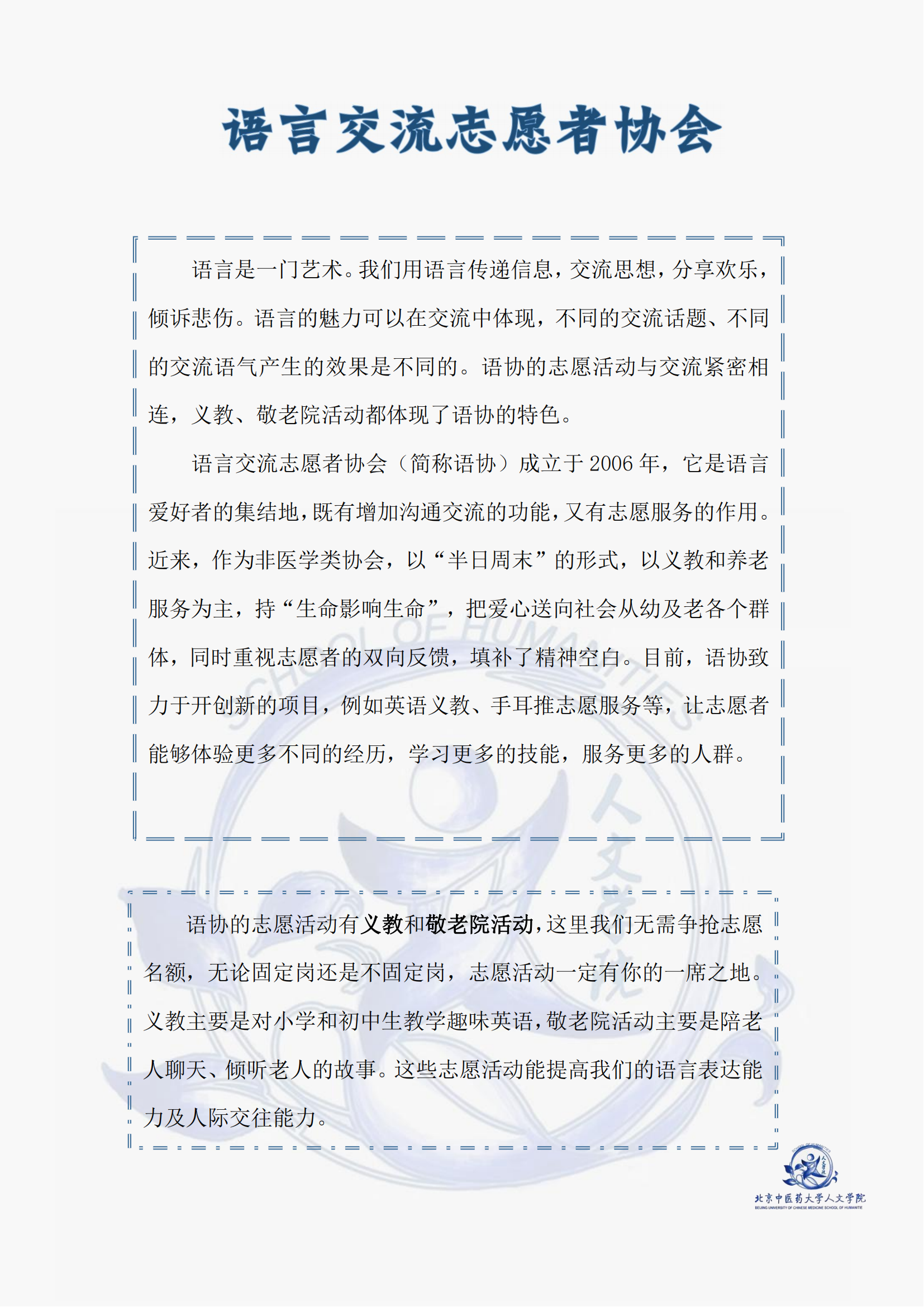 语言交流志愿者协会介绍