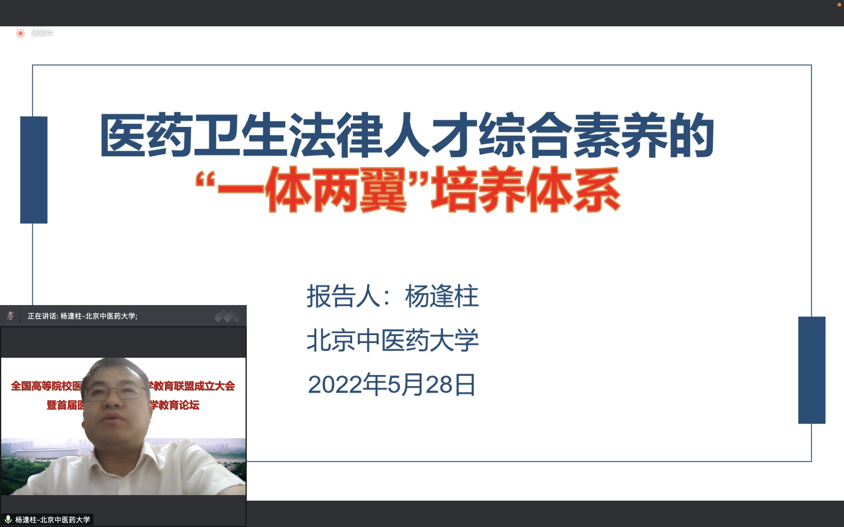 2022年5月28日,beat365官网杨逢柱副教授应邀参加全国高等院校医事法学教育联盟成立大会暨首届医事法学教育论坛。此次活动由西南医科大学和哈尔滨医科大学联合发起,150余位关注医事法学发展的学者参加。大会通过了《全国高等院校医事(卫生)法学教育联盟章程》《全国高等院校医事(卫生)法学教育联盟组织机构及人员名单》《普通高等院校医事(卫生)法学本科教学质量标准》专家共识等多项成果。