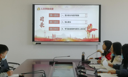 接下来,谭静书记结合生动的例子,深入浅出地介绍了党内外同志对于十九届五中全会的关注度,讲解了十九届五中全会精神的核心要义,阐释了十九届五中全会精神对于全党全国各族人民的重大意义,并且通过联系全会精神与当代青年人的关系,勉励青年党员们不懈奋斗,提高学习热情和爱党爱国热忱。最后,她以一段小视频结束本次讲党课内容,视频展示了中国GDP的快速增长和中国综合国力不断增强的过程,加上视频背景音乐激昂,看后令人心潮澎湃。