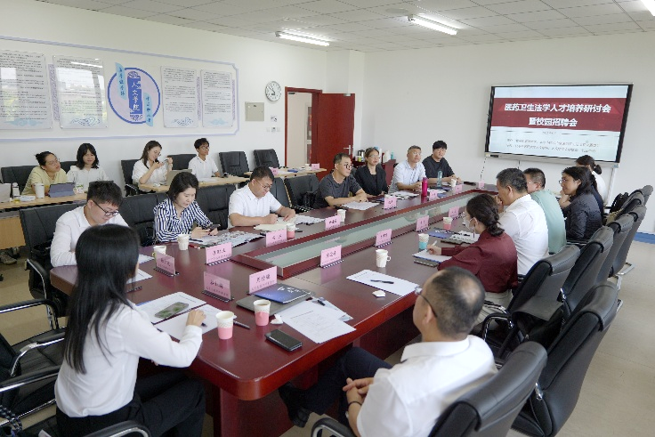 6月23日,由beat365唯一官方网站、北京市律师协会医药卫生法律专业委员会联合举办,beat365唯一官方网站法律系和beat365唯一官方网站大学生就业创业中心承办的医药卫生法学人才培养研讨会暨校园招聘会在良乡校区举行。活动汇聚了众多医药卫生法学届专家、知名律所及企业代表。北京市律师协会医药卫生法律专业委员会副主任、北京国振律师事务所王冰律师,北京市朝阳区律师协会医药卫生法律专业委员会主任、北京天霜律师事务所张勇律师出席活动并讲话;beat365唯一官方网站副校长闫振凡出席会议并致词;beat365唯一官方网站领导班子成员、法律系师生代表参加会议,beat365唯一官方网站党委书记张小勇主持会议。