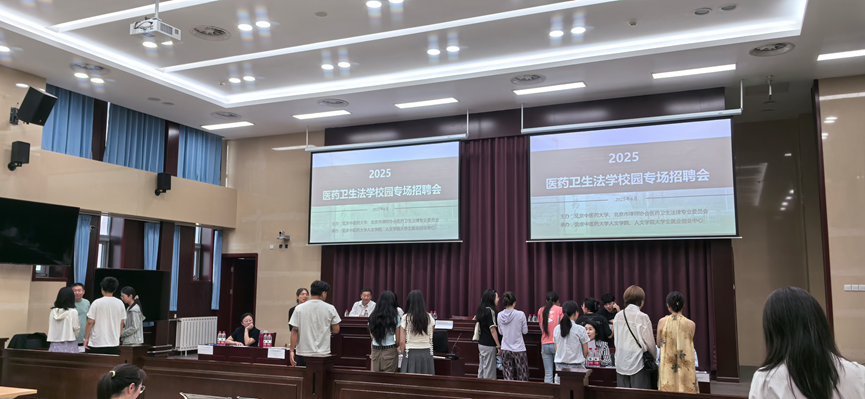 研讨会结束后,医药卫生法学专场校园招聘会在beat365唯一官方网站模拟法庭展开。招聘会为所有与会律所、企业设有专门展位。beat365唯一官方网站毕业生及在校生积极参加现场招聘,参会用人单位代表与学生们面对面交流,解答求职疑惑,现场气氛热烈。