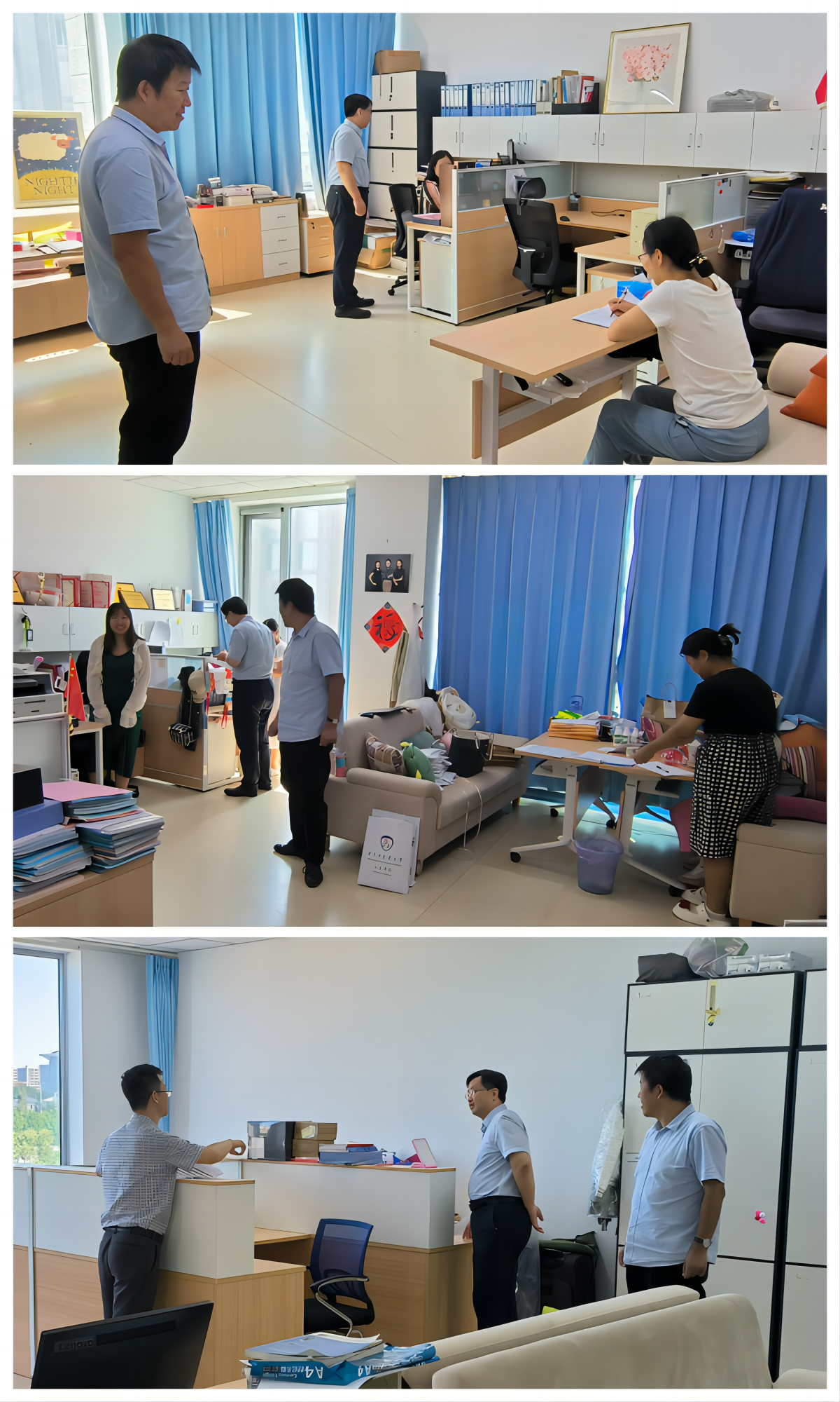 此次安全检查围绕学院良乡校区办公室、学生自习室、模拟法庭等区域的安全防控措施落实和消防安全隐患排除等方面开展。针对办公室安全情况,院领导指出办公室用电安全是大事,谨记人走需断电、断电需及时,要严格落实安全责任制。其次提出办公室、存储室等区域做好清扫整理,对放置的物品也要高度重视,避免高温或封闭环境下引发易燃易爆物品变质发生安全事故。