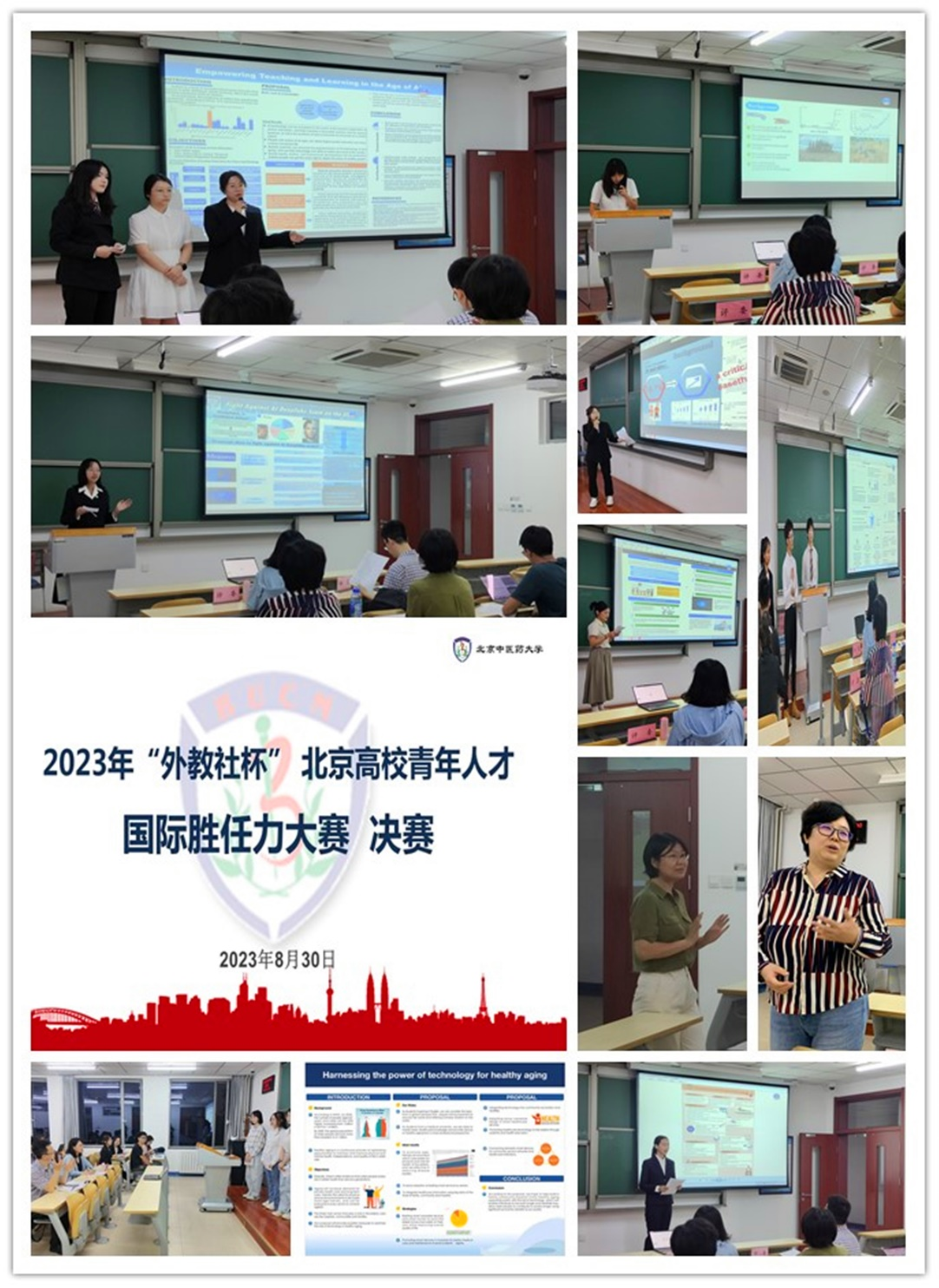 为深入学习贯彻党的二十大精神,培养熟悉党和国家方针政策、了解我国国情、具有全球视野、通晓国际规则、熟练运用外语、具有国际胜任力、能有效参与全球治理的高水平青年人才,在教务处的指导下,beat365唯一官方网站承办了2023年“外教社杯”北京高校青年人才国际胜任力大赛beat365唯一官方网站校内赛事。2023年8月30日晚,校内决赛在良乡校区西院公共教学楼201教成功举办。