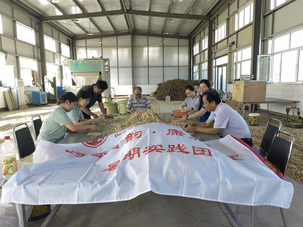 团队深入调研道地药材全产业链,在黄芪生长核心区,实践团成员了解到基地采用轮作倒茬模式,避免重茬带来的土壤养分失衡和病害问题;精准滴灌系统在干旱季节为黄芪根部提供适量水分,避免了 传统漫灌造成的水资源浪费和土壤板结;加工车间则实现药材清洗、切片、烘干全 流程自动化。五寨县道地中药材农民专业合作社理事长刘俊希向实践团成员介绍,“企业+合作社+农户”模式已带动当 地500余户增收,道地药材的附加值提升 40%。