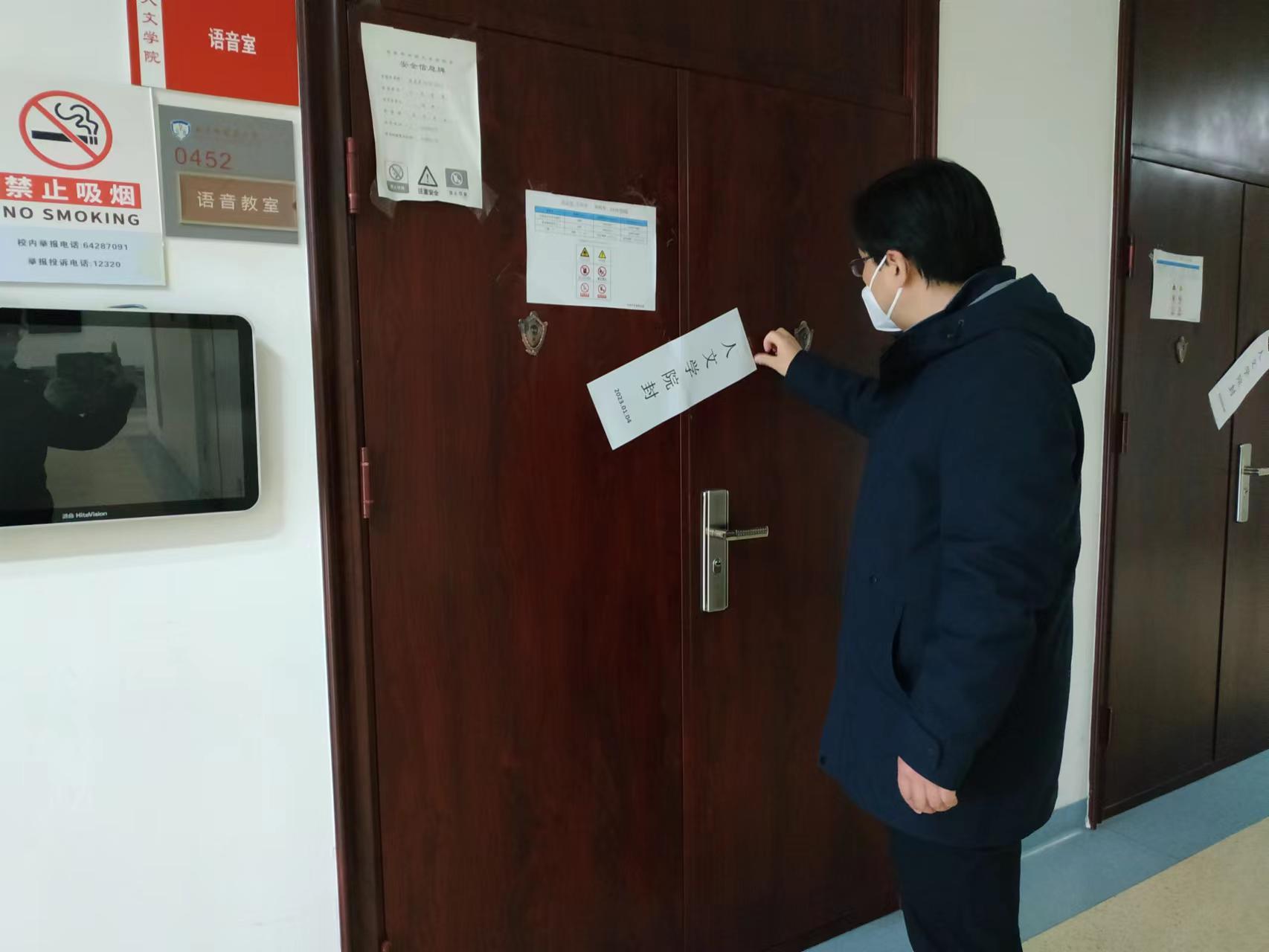 最后,孔祥国副院长与项婷老师又检查了良乡校区语音室的安全情况,并贴上封条。