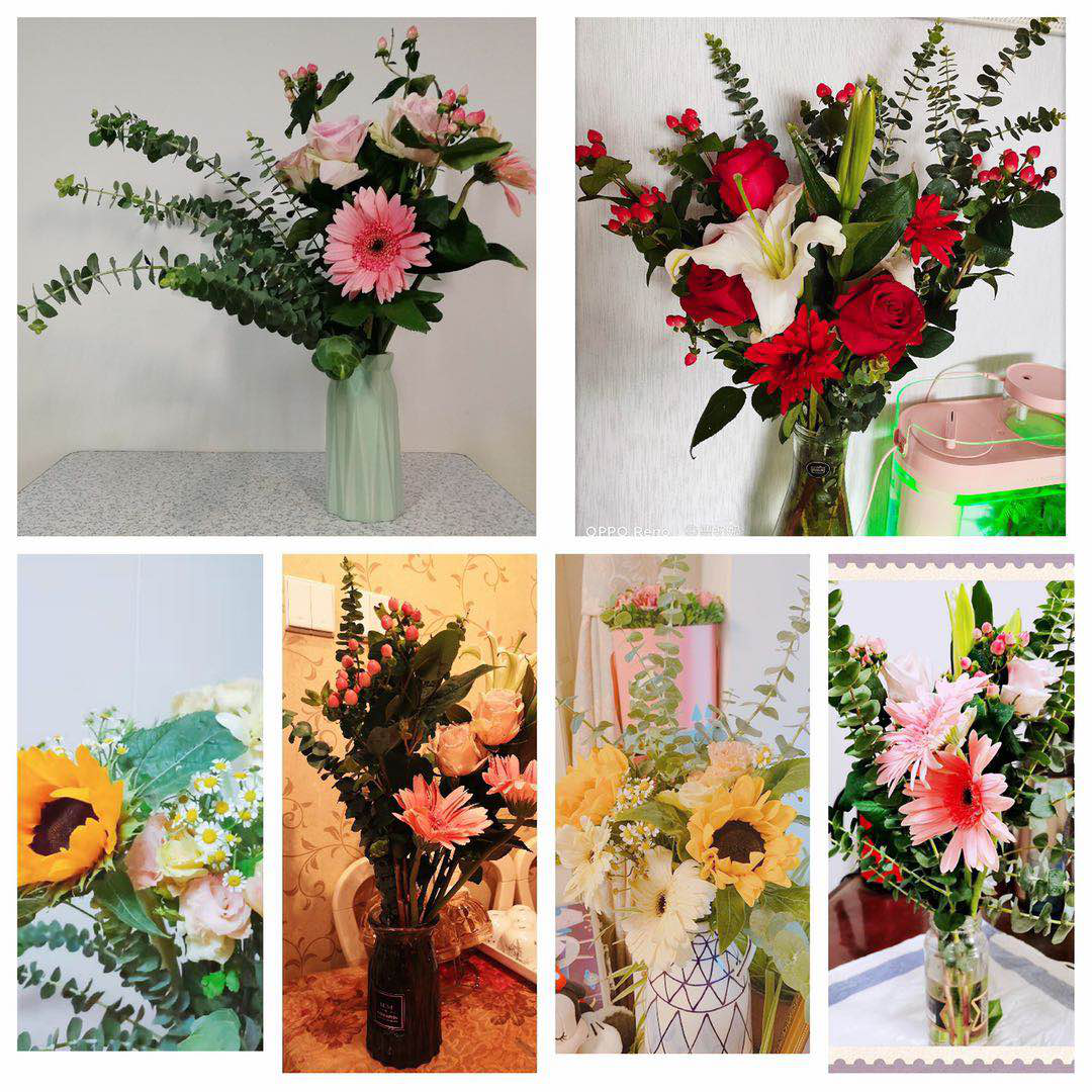 几个月的居家教学中,beat365官网教职员工克服各种困难,接受挑战,圆满完成本学期线上教学、科研与课后辅导等工作。为纾解身心,营造温馨愉悦的氛围,提高教职员工归属感,促进大家相互交流,特开展了此次活动。此次花材邮寄至老师家中,共分三个主题:阳光、热情、温馨,选用了十几种当季鲜花搭配不同主题,包括向日葵、桔梗、洋甘菊、非洲菊、尤加利叶、红玫瑰、白百何、火龙珠、粉龙珠、粉玫瑰等不同花材,让老师们足不出户即能体验夏日阳光、热情与温馨。老师们收到花材后,根据自己的喜好,完成自己心仪的插花作品,并对自己的插花作品进行摄影。