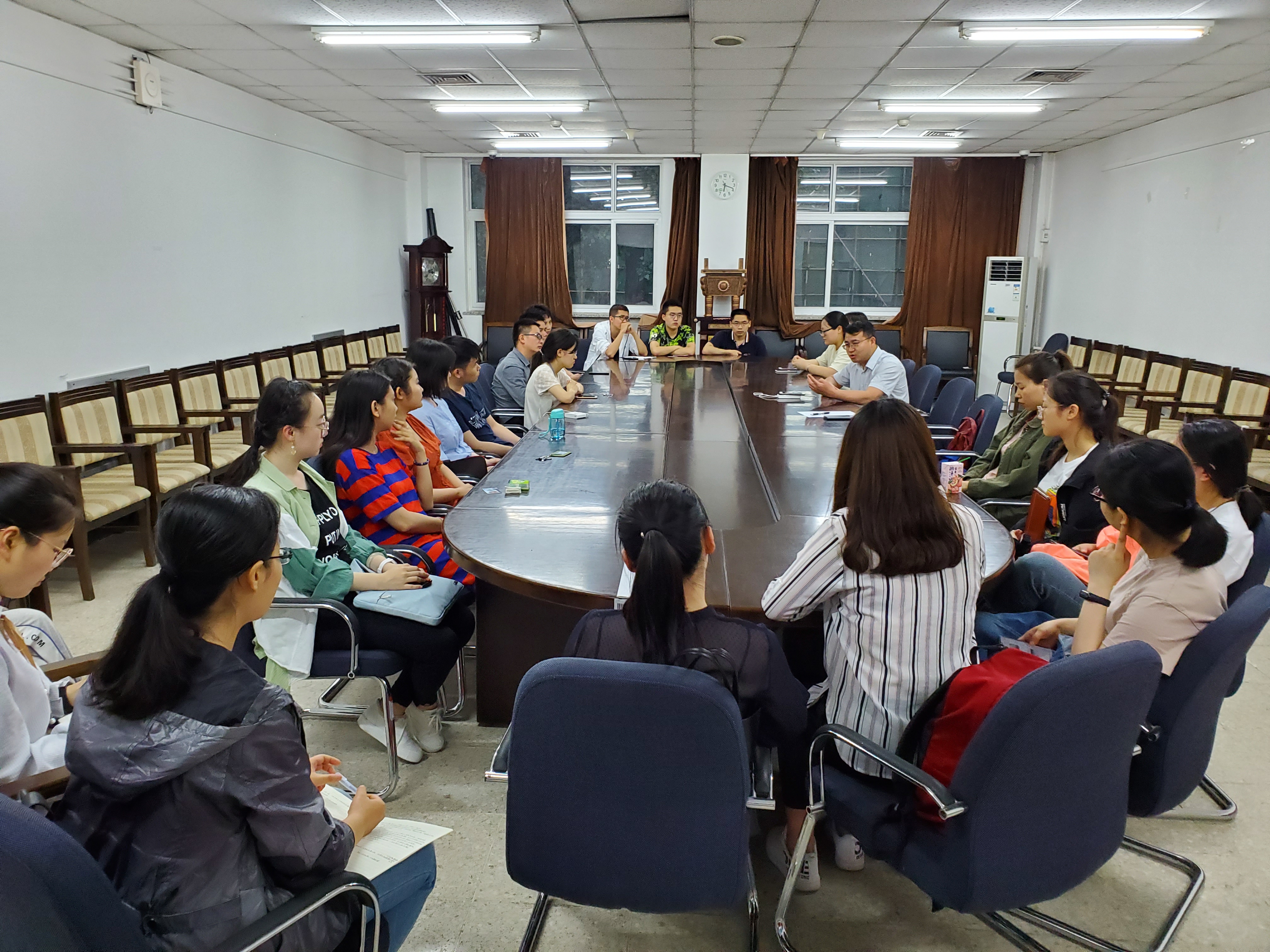 王鹰老师表示,在前期就业推进过程中发现,班级部分毕业生存在就业方向模糊、就业意愿不强等情况,为了帮助毕业生们树立就业信心、指明就业方向,特举行此次就业推进会。杨逢柱老师在会上与在场的毕业生进行了深度交流。他首先分享了自己当年考研和就业的经验,强调法律实务的重要性,鼓励同学尽快走向一线积累经验和提升能力。随后,杨老师还逐一询问了在场同学的就业进度,并给出建议。
