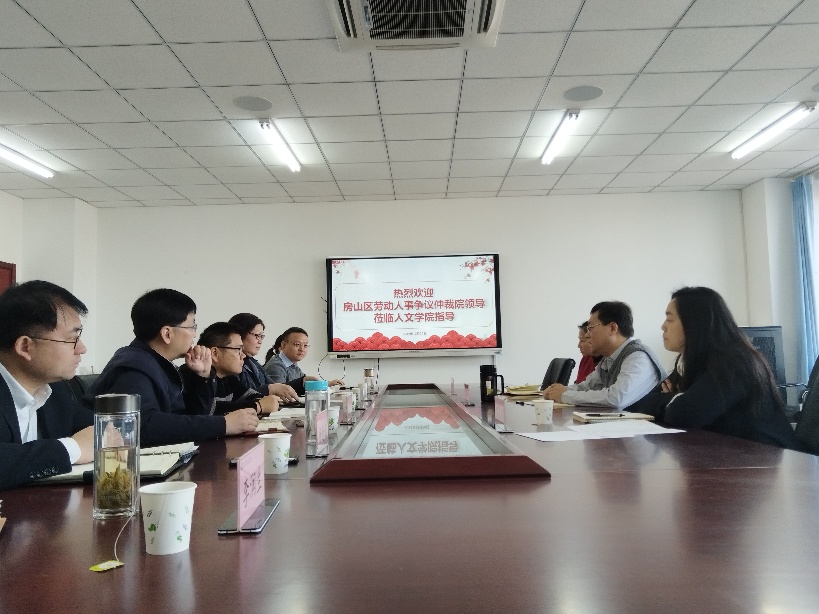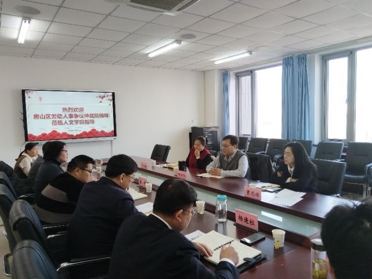 随后,房山区劳动人事争议仲裁院陈华铃院长介绍了房山区劳动人事争议仲裁院基本业务情况,并围绕双方拟开展的合作内容进行了详细说明。