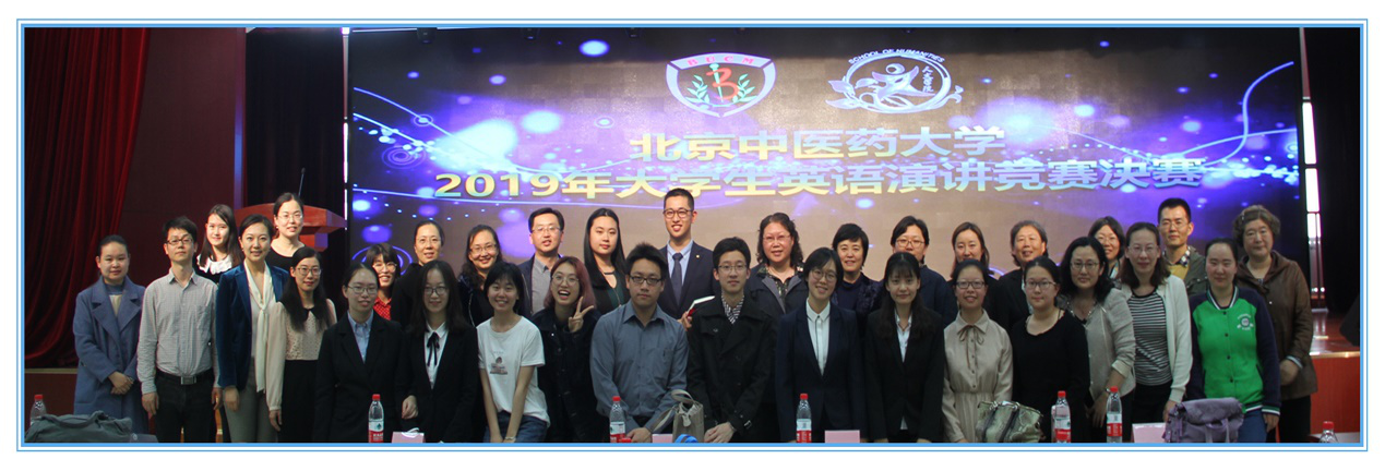 2019年4月23日下午,“beat365唯一官方网站2019年学生竞赛月”校级项目之大学生英语演讲竞赛决赛在良乡校区学生活动中心四层举行。我校教务处副处长薛培、学工部副部长艾华、团委副书记宋珊珊、研究生院副院长倪磊、中医学院副书记赵建磊、针灸推拿学院副院长张海波、国际学院副院长丁胜云,以及beat365唯一官方网站书记杜伟、院长陈锋、副院长孔祥国、副书记李蔓荻、副院长陈子杰等beat365唯一官方网站教师出席比赛现场。