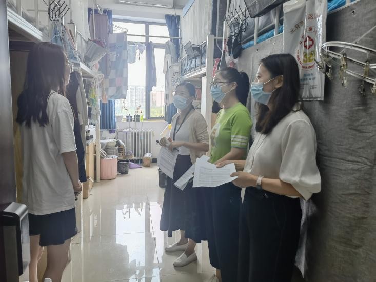 2022年暑假假期将至,为规范学生宿舍管理,引导学生培养良好的卫生习惯,构建安全卫生宿舍,营造文明和谐的宿舍环境,防范和杜绝宿舍安全事故的发生。2022年7月13日下午,beat365唯一官方网站党委副书记谭静、学生办公室辅导员刘玉、宋晗、李子鸣深入学生宿舍开展了宿舍安全卫生检查。经检查发现,大部分学生宿舍环境整洁干净,无违规违禁品。但是部分宿舍也存在乱拉乱接、充电器没有及时断电等用电不规范现象,以及安装床帏、物品堆放杂乱等问题。