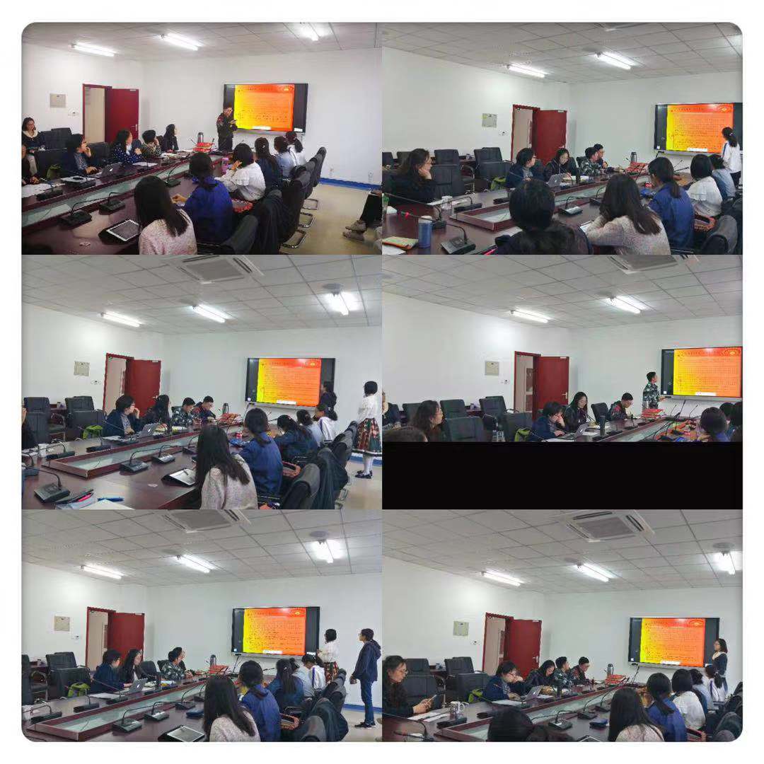10月23日下午14点30分,beat365唯一官方网站英语专业教工党支部与英语专业学生党支部在良乡校区beat365唯一官方网站楼305会议室成功开展“不忘初心,牢记使命”主题教育师生交流学习会系列活动之“平语近人”—习近平总书记用典英文翻译赏析及讨论。beat365唯一官方网站党委书记杜伟、院长陈锋、英语系教工党支部书记李晓莉、英语专业学生党支部书记宋晗以及两个支部全体师生党员参与了本次活动,活动由李晓莉主持。