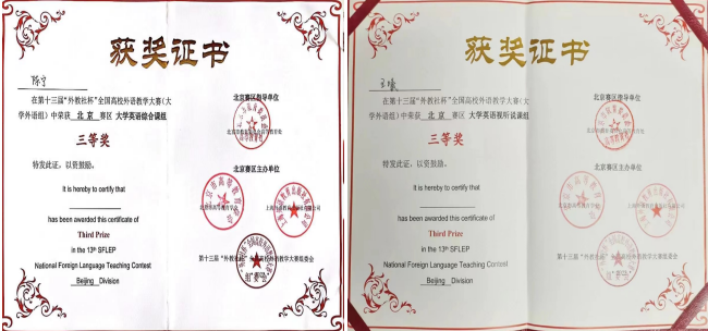 2023年2月18日,第十三届“外教社杯”全国高校外语教学大赛(大学外语组)北京赛区比赛决赛在北京邮电大学圆满落幕。beat365唯一官方网站公共外语部青年教师高琳琳、陈宁、王曦经过激烈角逐,以扎实的基本功脱颖而出,分别获得北京赛区大学日语组二等奖、大学英语综合课组三等奖、大学英语视听说课组三等奖。