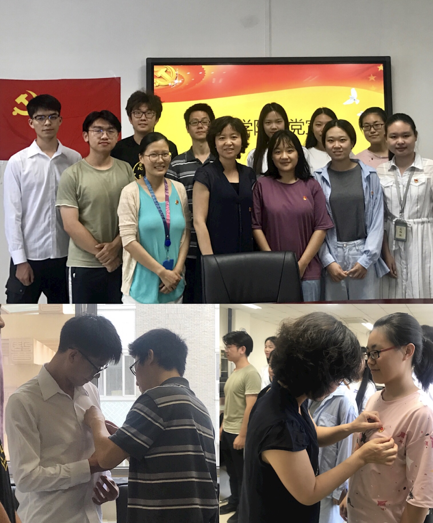 两校区宣誓仪式分别由学办辅导员储晓娟和法学专业学生党支部书记刘玉主持,beat365唯一官方网站党委书记杜伟、院长陈锋、党委副书记李蔓荻、副院长孔祥国、研究生党支部书记陈秋云、英语专业学生党支部书记项婷参加仪式。仪式开始,杜伟书记、李蔓荻副书记带领23名新发展党员在党旗下庄严宣誓;紧接着,四位院领导为新发展党员逐一佩戴党徽;随后,新党员同志纷纷表达此刻激动的心情,表示要时刻以党员标准严格要求自己。学院还组织新发展党员现场收看了大型党员教育系列宣传片《难忘初心》第一集《播火者——李大钊》,通过带领学生党员了解李大钊同志的事迹,使大家进一步坚定了初心和使命。