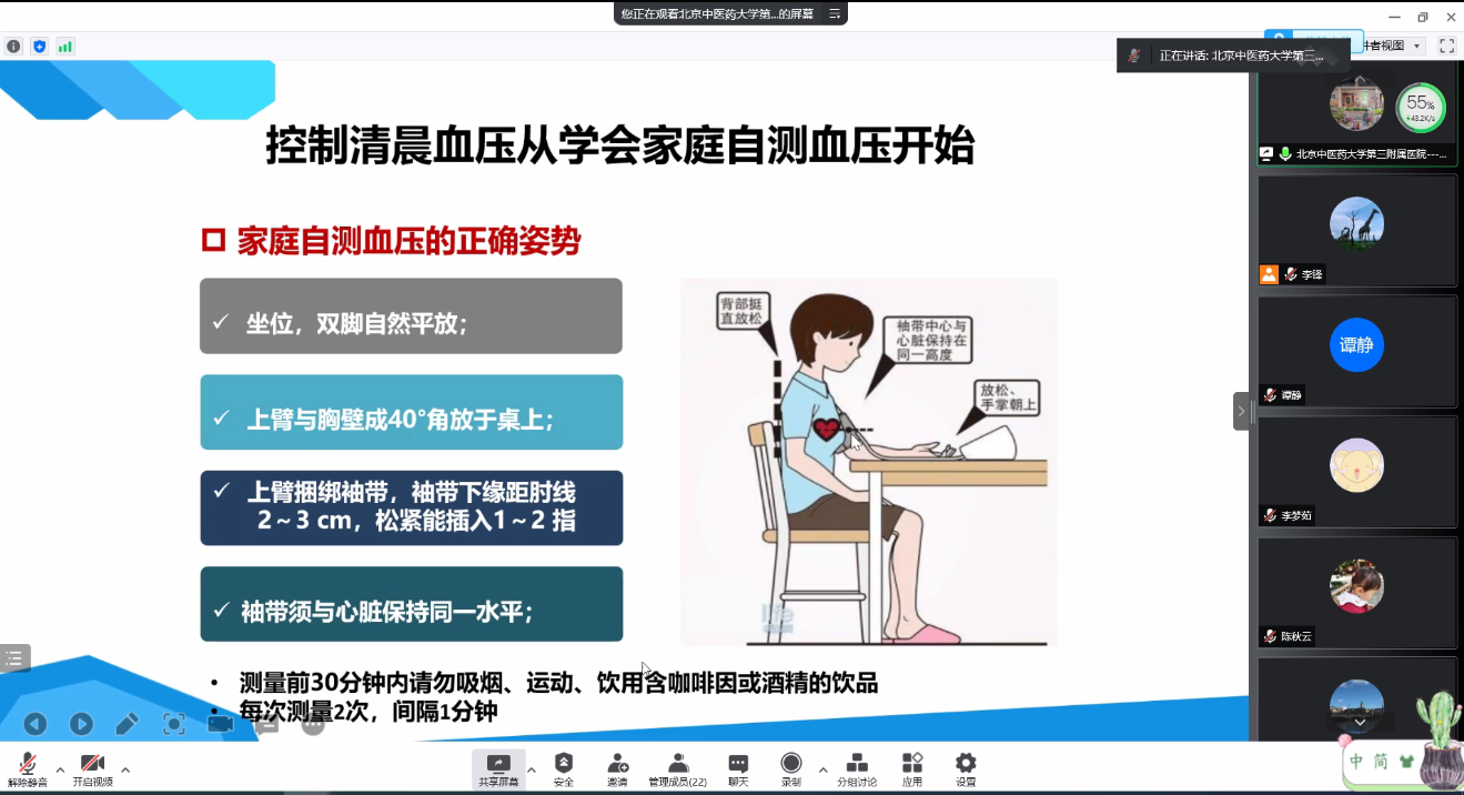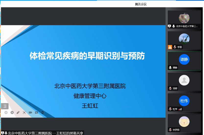 疫情期间做好自我防护关爱身体健康,2022年5月13日上午beat365唯一官方网站邀请了beat365唯一官方网站第三附属医院健康管理中心王虹虹主任,通过腾讯会议线上顺利举办了健康讲座,beat365唯一官方网站的教职工积极参与。本次讲座旨在帮助教师们重视和按时进行健康检查,做到“未雨绸缪”、“防患未然”,让教师们未来能健康的生活和工作。