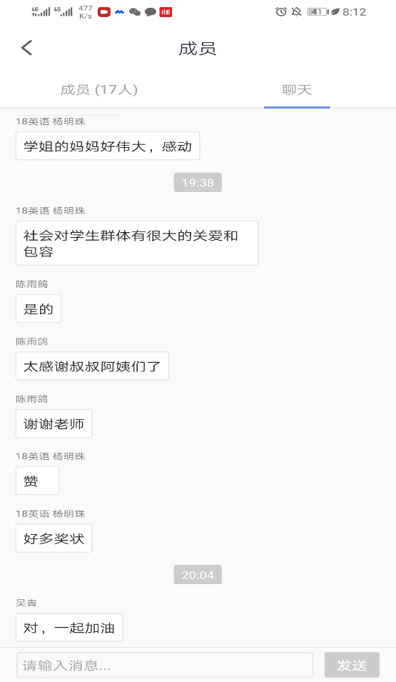 活动开始,李老师首先邀请每个同学进行自我介绍。同学们刚开始略显羞涩,在老师的带领和示范下,在每一位同学对介绍人的回应中,气氛逐渐活跃起来。接下来,李老师让每个同学用三个关键词分享对近期生活的感受,并请每个人讲讲感受背后的故事。来自17级国传班的周旭辉同学分享了她的家庭抗疫故事。她的妈妈是一名医生,在疫情爆发后,她的母亲便投入了抗疫一线,为了帮助她的妈妈,她的爸爸和弟弟也住在了妈妈的诊所里,而她因为市里的分区管制只能一个人留守在家。她用哽咽的声音说,“放假一个多月我和妈妈只待了不到十五天,我好想妈妈。”同学们都为之动容,纷纷给与她积极的回应。19法学班的赵虎同学的三个关键词是“耐心”、“思考”和“成长”,他在家这段时间帮助父母照顾陪伴年幼的妹妹,感受到亲情和家人的重要,也对未来自己的人生有了更多的思考。18英语的杨明珠同学的关键词是“充实”、“温暖”、“小遗憾”,假期里她利用网络上提供的免费资源学习绘画、练习声乐,读书学习……虽然同学们的关键词和故事各不相同,但每一个关键词和故事里都饱含着同学们对疫情的关心、对国家、社会、医护工作者、身边默默付出的工作者的感恩,以及对返校学习的渴望。最后,同学们依次用一句话表达了参加此次线上团体辅导活动的感受,在倾听和分享中,同学们感受到温暖的力量和彼此的支持。