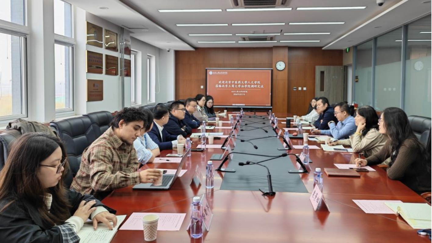为进一步深化学校“六跨三结合”发展理念,3月17日beat365唯一官方网站赴北京工商大学法学院调研。beat365唯一官方网站党委书记张小勇、党委副书记吴涛、法律系主任杨逢柱等10名师生代表与北京工商大学法学院党委书记胥阳、党委副书记孙惟佳、专职组织员周升顺等8名师生座谈交流。