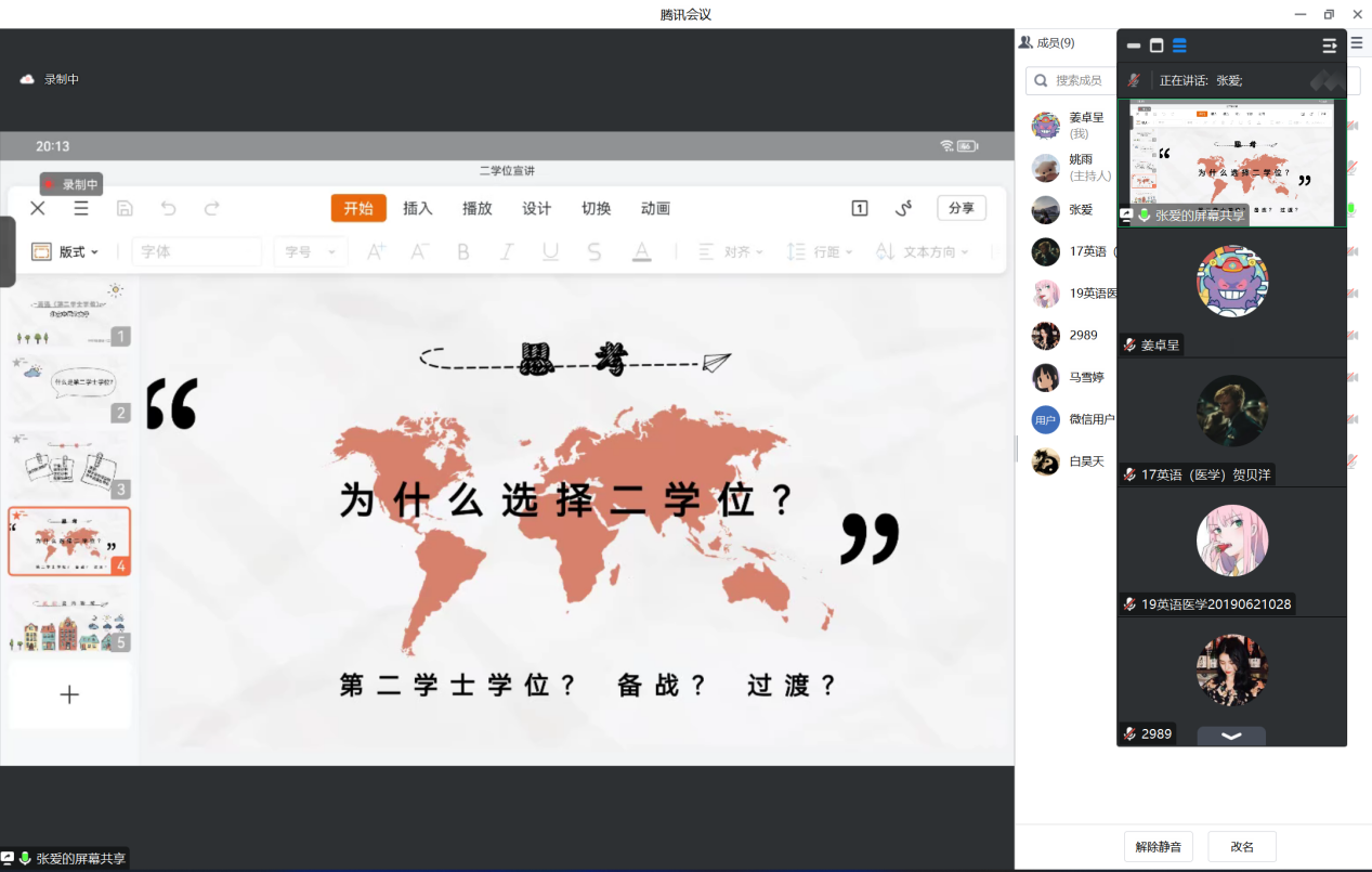 随后,张爱介绍了第二学位在学习氛围、费用和应届生身份方面的优势,并告诉大家要根据自己选择第二学位的原因,做出适合自己的选择,明确后续的安排。