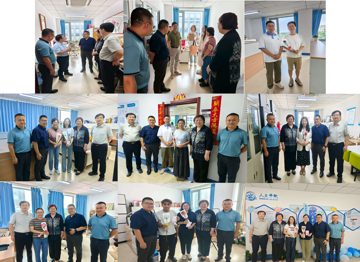 学院领导班子走访了各系部和学院行政办公室,向学院老师们带去了学院的关心和祝福,同学们也向老师们送上了鲜花和贺卡。此外,学院领导班子还通过工作群等媒介向全院教师送去了节日祝福。