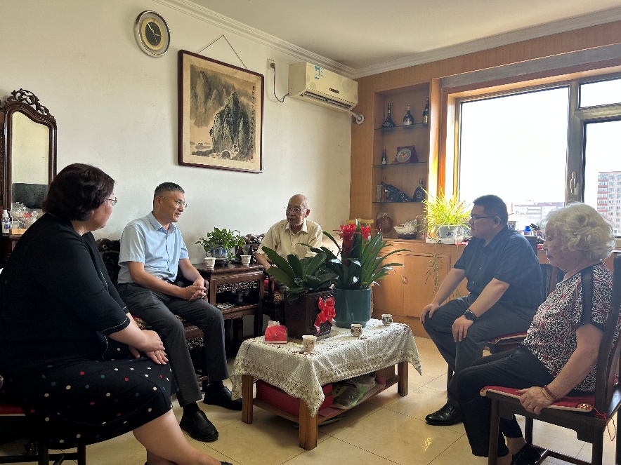 根据学校安排,9月8日,刘存志副校长带领beat365唯一官方网站党委书记张小勇、院长陈锋看望beat365唯一官方网站中医药退休老教授方廷钰老师及家属。校、院两级领导向方老师及家人带去了学校的关心和祝福,同时也向为中医药翻译和国际传播事业倾注心血的老一辈教育工作者致以崇高的敬意。