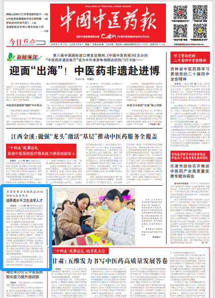 会议强调,中医药的守正创新与高质量发展,必须依靠法治的引领、规范和保障。卫生法学作为医学与法学相互交融协同发展的新兴交叉学科,为这一进程提供了重要理论支撑与实践路径。高等医学院校肩负着培养高水平卫生法学人才的时代使命,亟需加强相关学科建设,推动复合型人才培养体系的完善。同时,要着力松建具有鲜明中医药特色的卫生法学体系,深入推进中医药法的实施,不断强化中医药知识产权保护、中药饮片监管等重点领域的法律制度建设。